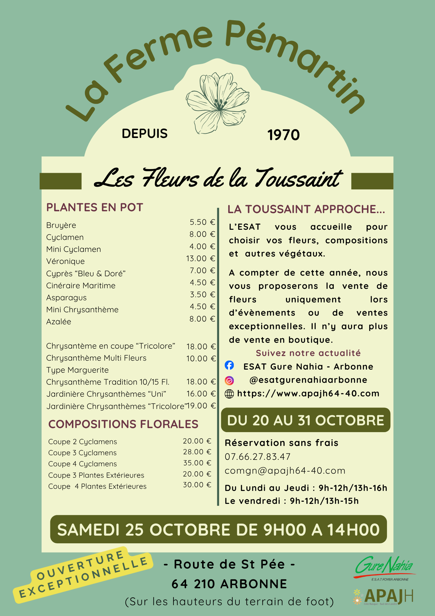 👉 Réservation sans frais : Vous pouvez réserver vos fleurs en contactant le 07.66.27.83.47 ou par e-mail : comgn@apajh64-40.com.